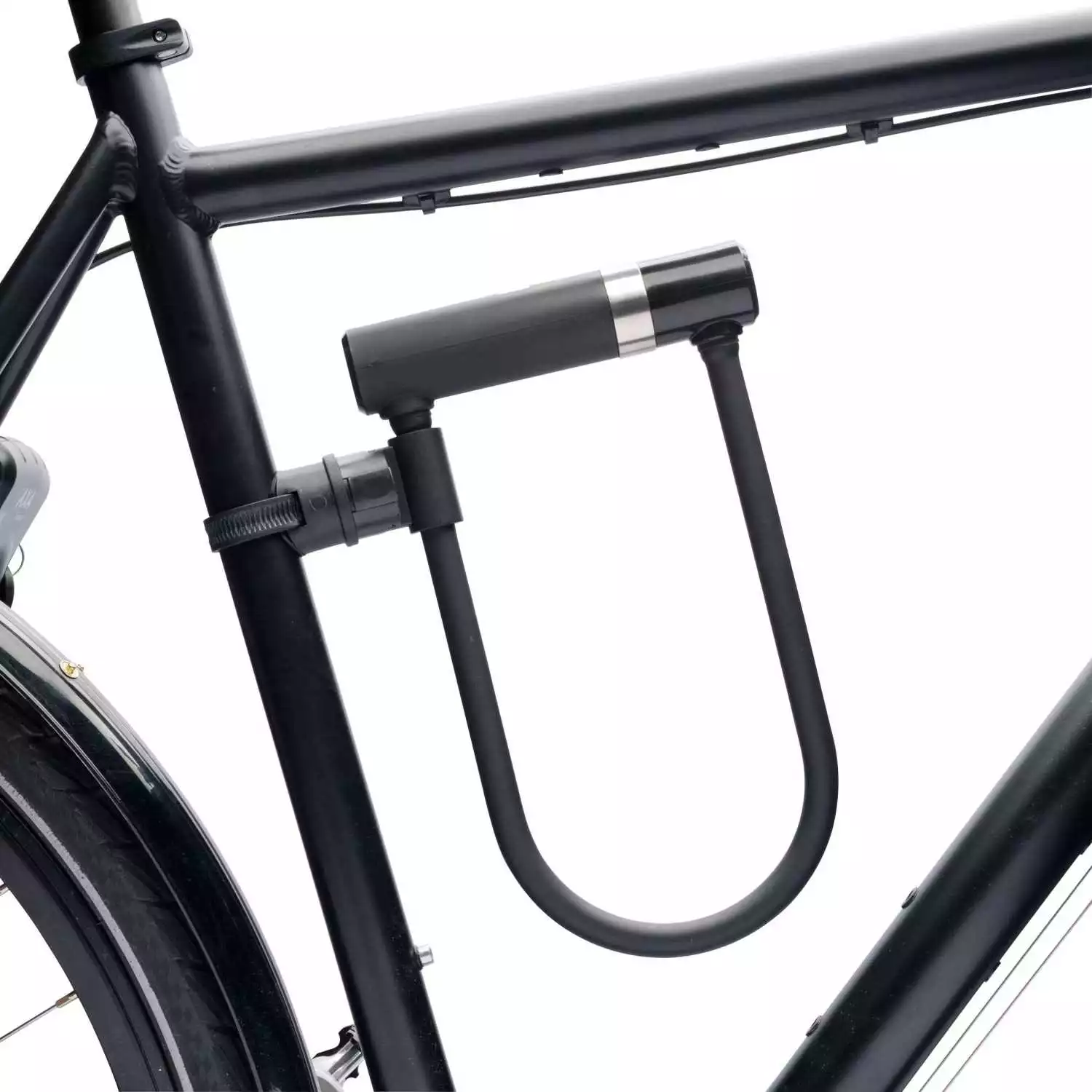 Det medfølger beslag til låsen, så den kan monteres på sykkelen.