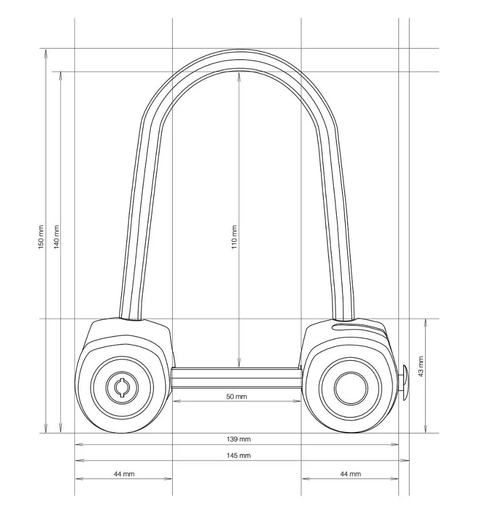 Smal Modell som passer til bl.a. racersykkel – måler ca. 5,5 cm mellom låsehodene .