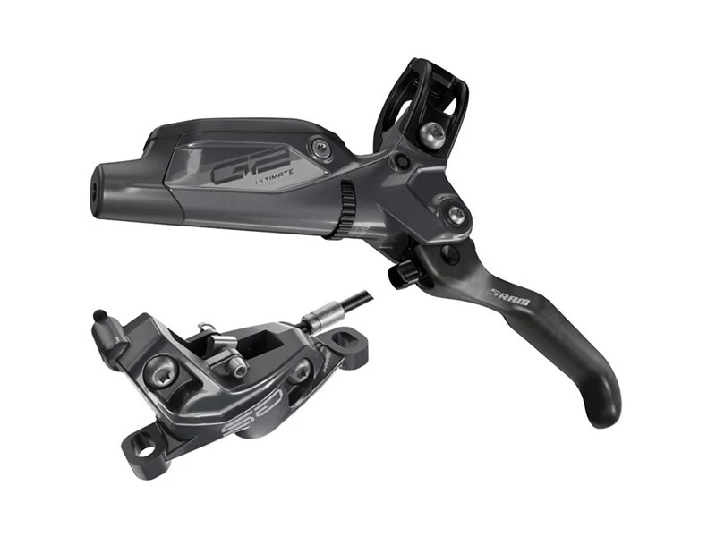 SRAMs nyeste 4-stemplede skivebremser G2 Ultimate med både Bremsehendel, 2000 mm. bremseslange og Kaliber.
